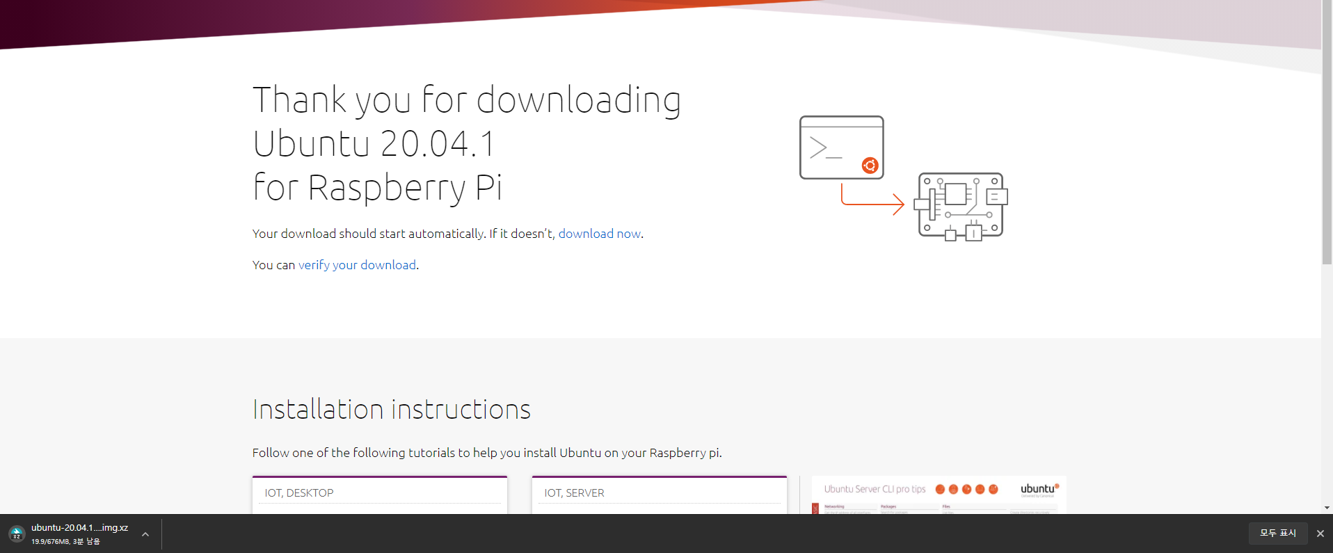 이미지 다운로드할 수 있는 사이트에 접속(https://ubuntu.com/download/raspberry-pi)하여 원하는 이미지를 다운받습니다!