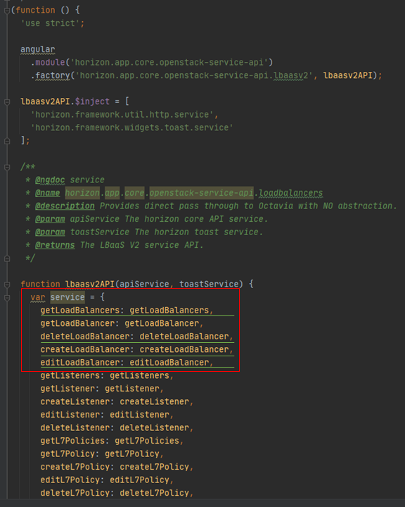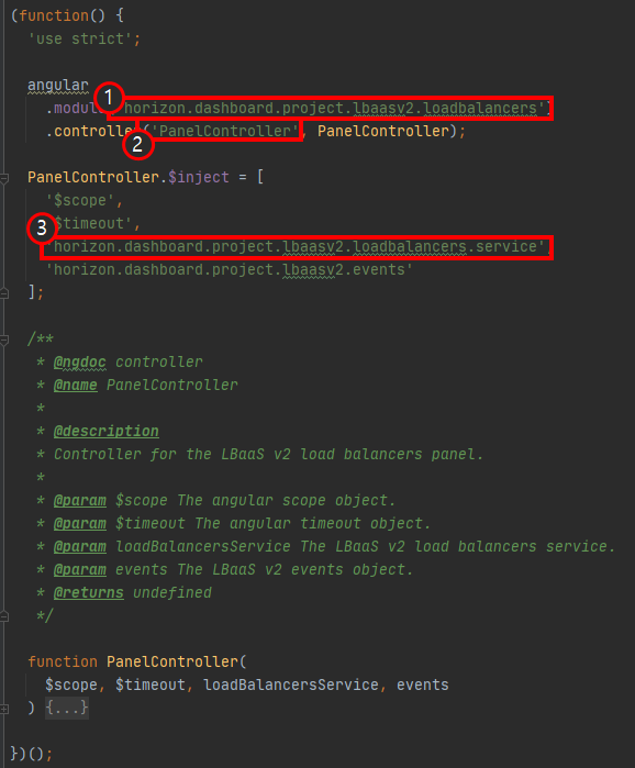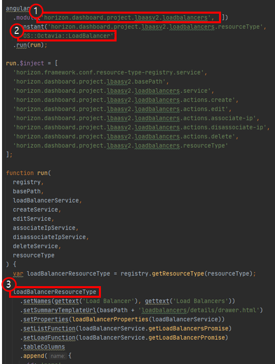 [그림 12] lbaasv2.module.js - horizon.dashboard.project.lbaasv2 모듈명