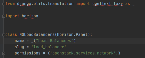 -> 만약 octavia_dashboard 폴더 안에 여러 메뉴가 존재시 대표가 되는 한 곳에만 입력하면 된다. - ADD_ANGULAR_MODULES : 추가할 Angular Module 정보를 입력(모듈명만 입력하면 된다.)한다. 해당 모듈은 Horizon 애플리케이션에 종속된다.