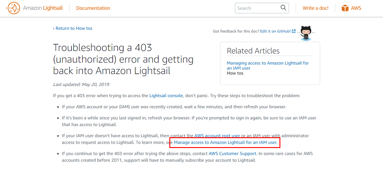 2) Manage access to Amazon Lightsail for an IAM user. 클릭