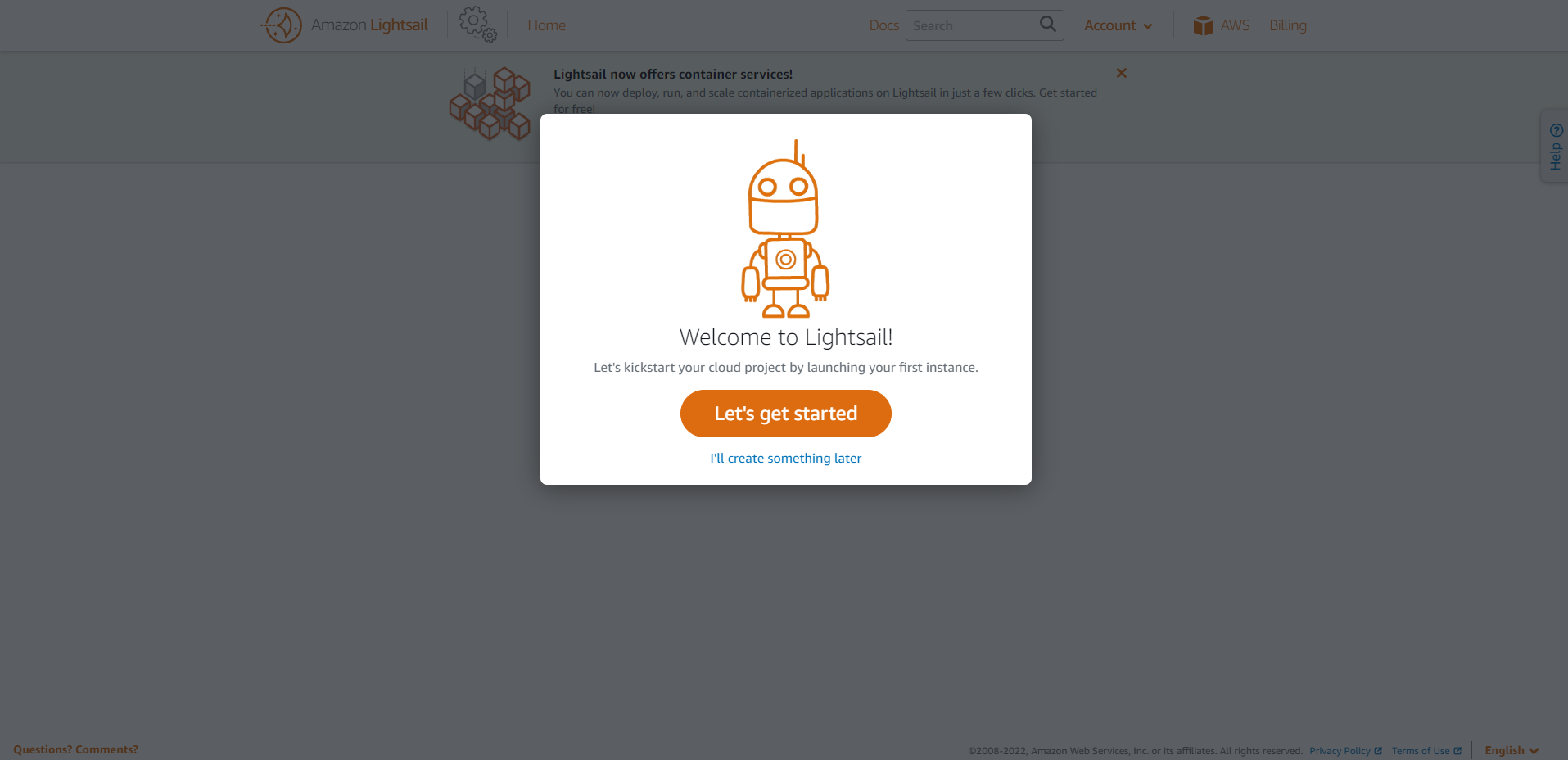 그리고 오늘 사용하기 위해 카드 등록하고 AWS Lightsail에 접속했는데 에러가 뜨더라고요..