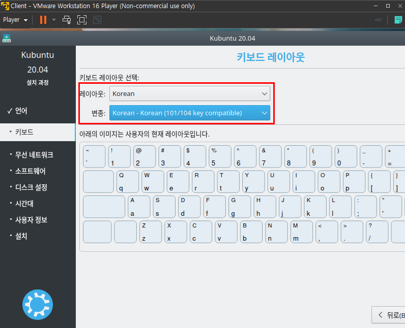 3.6 키보드 레이아웃 선택 → 계속하기 버튼 선택