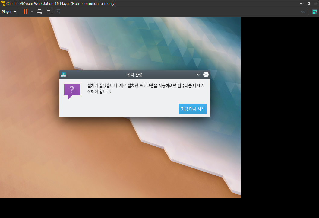 3.11 설치진행 및 지금 다시 시작 버튼 선택!