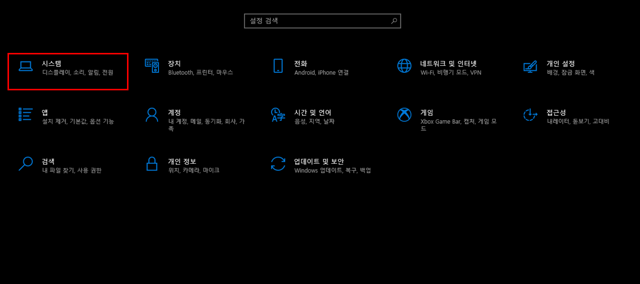 1.1 시작 버튼 선택 → 설정 버튼 선택!