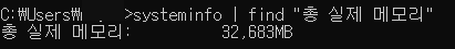 2.2.1 systeminfo | find "총 실제 메모리” 입력