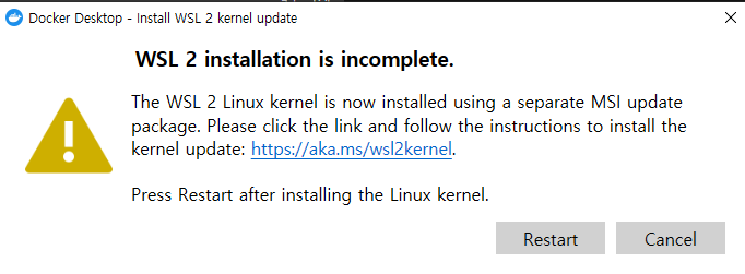 [Docker, Error] WSL 2 installation is incomplete 에러