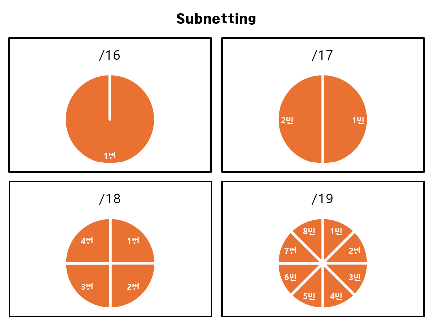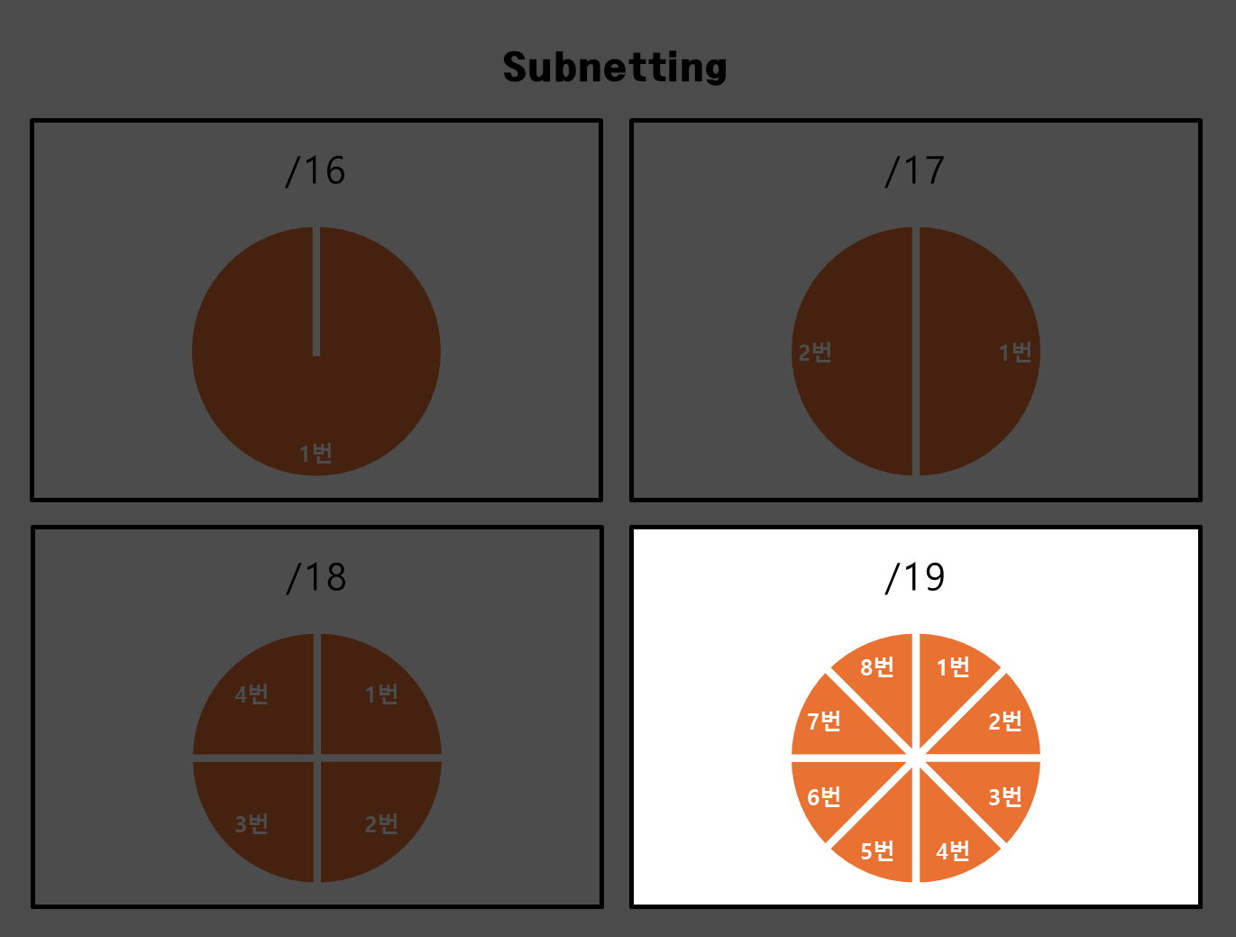 마치 하나의 큰 파이를 8개 조각으로 나누듯, 8개의 Subnet을 만들 수 있습니다.