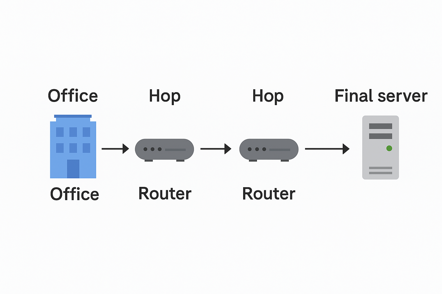 - 사무실 → 회사 메인 라우터 → 인터넷 게이트웨이 → 최종 서버